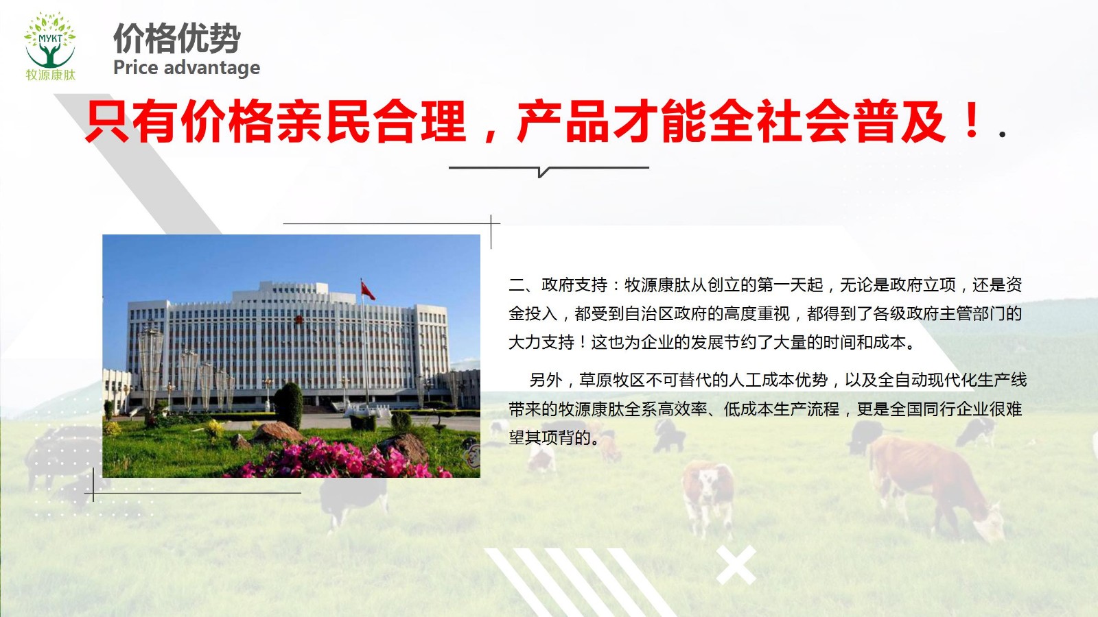 摘要:只有價(jià)格親民合理,產(chǎn)品才能全社會普及!高科技、高品質(zhì)、低價(jià)位!“同質(zhì)價(jià)優(yōu)”,“同價(jià)質(zhì)優(yōu)”是所有人的愿望,但可不是一般企業(yè)能做到的。牧源康肽把工廠就建在了全中國優(yōu)質(zhì)新鮮牛骨的盛產(chǎn)地——呼倫貝爾大草原,首先,就不僅僅占據(jù)了原料品質(zhì)優(yōu)勢,同時(shí)也占..